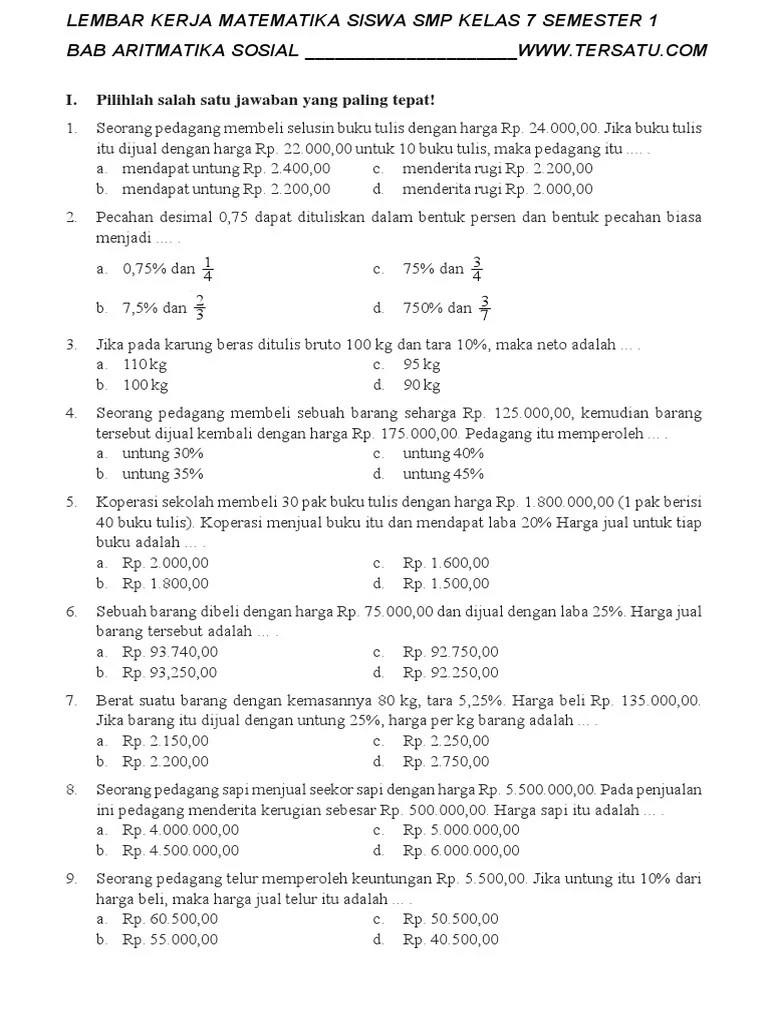 Maybe you would like to learn more about one of these? Soal matematika smp aritmatika sosial language:id. We did not find results for: Check spelling or type a new query.